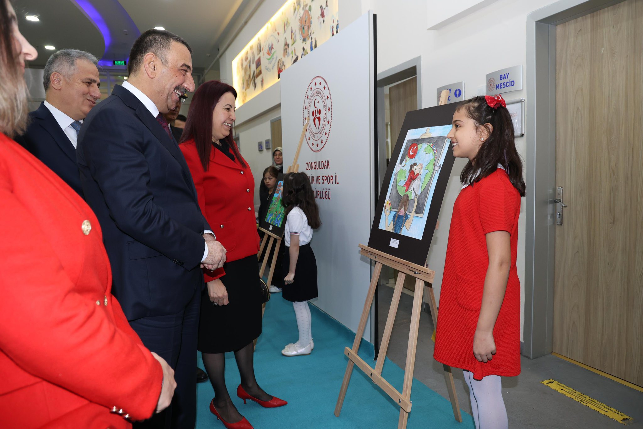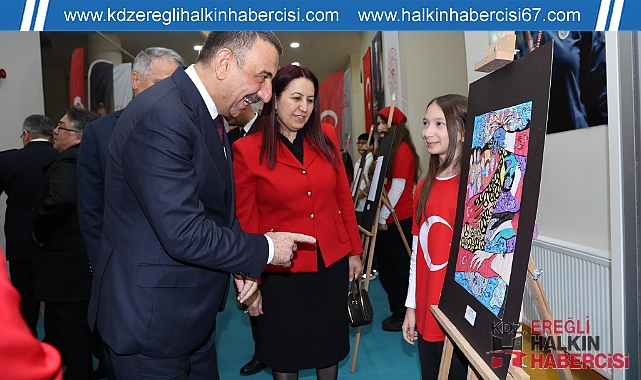Zonguldak Valisi Osman Hacıbektaşoğlu ile eşi Güney Hacıbektaşoğlu, “23 Nisan Resim ve Dereceli Eserler Sergisi”ni ziyaret etti.