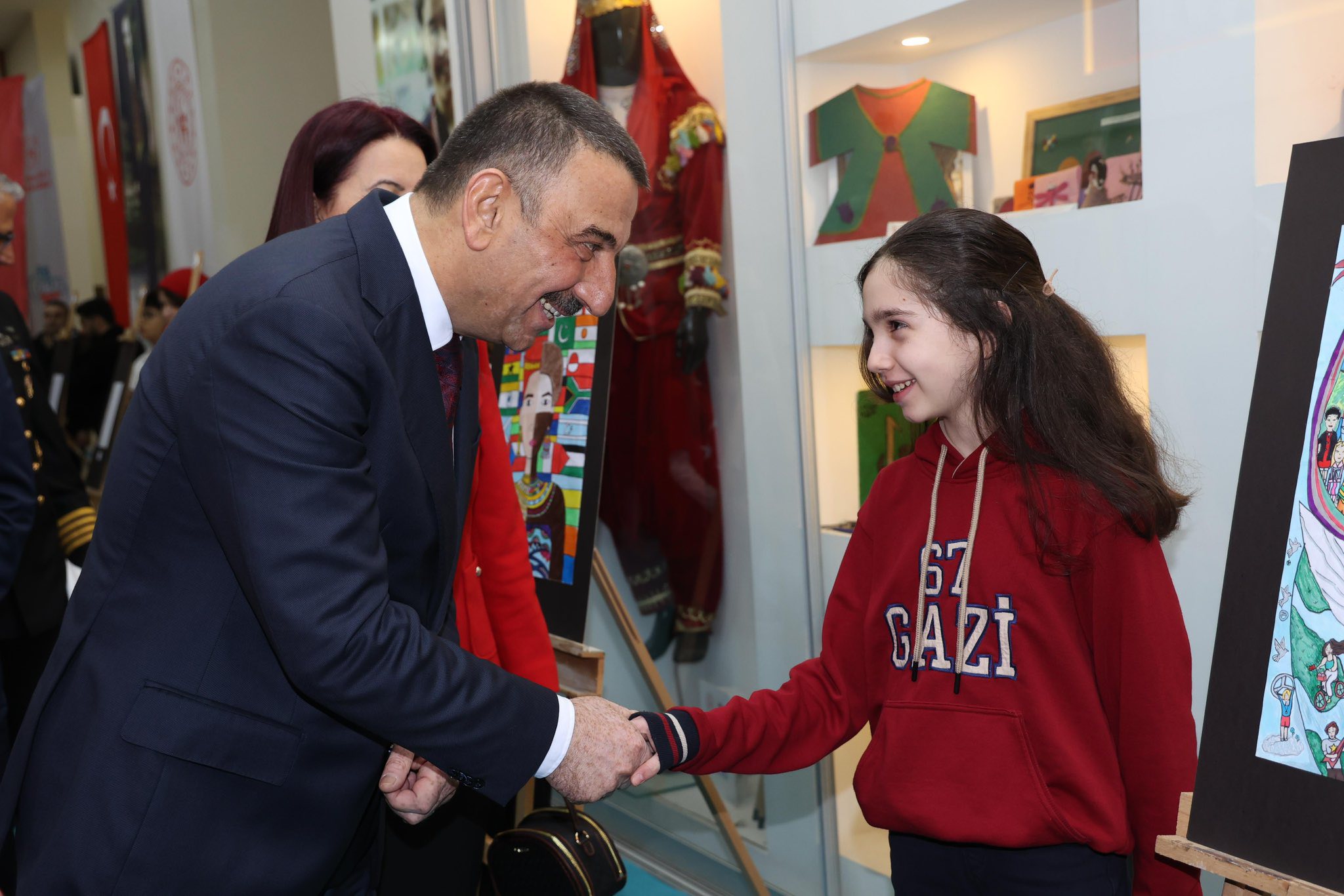 Vali Osman Hacıbektaşoğlu ile eşi Güney Hacıbektaşoğlu, 23 Nisan Ulusal Egemenlik ve Çocuk Bayramı etkinlikleri kapsamında, Gençlik ve Spor İl Müdürlüğü Fuaye Alanı’nda açılan “23 Nisan Resim ve Dereceli Eserler Sergisi”ni ziyaret etti.23 Nisan temalı yarışmalarda dereceye giren öğrencilerin eserlerinin yer aldığı sergiyi ilgiyle inceleyen Vali Hacıbektaşoğlu, öğrencileri tebrik ederek başarılarının devamını diledi.