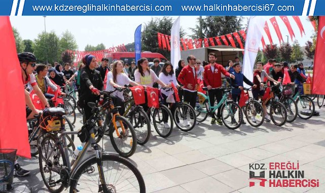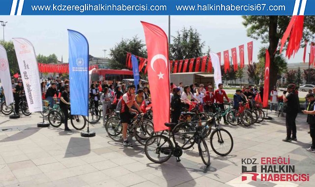 Düzce'de Gençlik Haftası etkinliklerinde gençler 8 kilometre pedal çevirdiler.