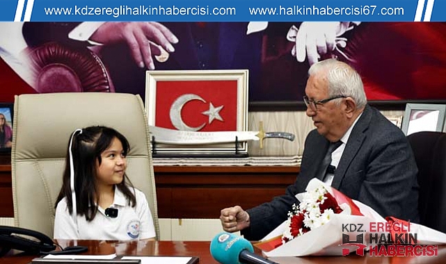 Kdz. Ereğli Belediye Başkanı Halil Posbıyık, 23 Nisan Ulusal Egemenlik ve Çocuk Bayramı nedeniyle koltuğunu İzmirlioğlu İlkokulu 2. sınıf öğrencisi Aden Su Cebir’e devretti.