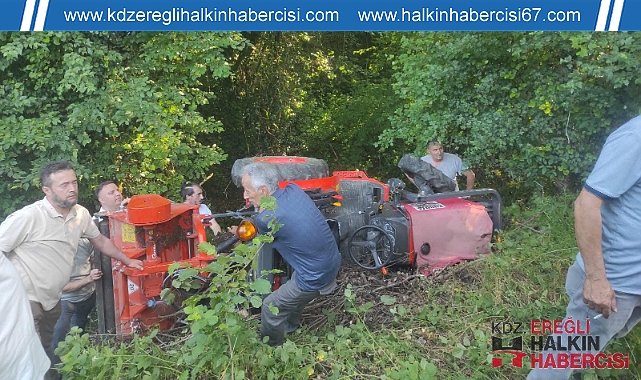 Kaza, Alaplı Kürkükler köyü mevkisinde meydana geldi. Edinilen bilgiye göre, Sadi B., yönetimindeki traktör yol üzerindeki kütüğe takılarak orman yolunda direksiyon hakimiyetini kaybetmesi sonucu takla attı. Kazada sürücü yaralandı. Durum 112 Acil Çağrı Merkezi'ne bildirildi. İhbar üzerine bölgeye itfaiye ,sağlık ve jandarma ekipleri sevk edildi. Sadi B. sağlık ekipleri tarafından yapılan ilk müdahalenin ardından sağlık ekipleri ve itfaiye ekiplerince tarım aracı üzerinde 2 kilometre uzaktaki ambulansa taşındı. Ambulansta ilk müdahalesi yapılan Sadi. B. Ereğli Devlet Hastanesine kaldırılarak tedavi altına alındı.