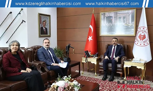 Kozlu Belediye Başkanı Altuğ Dökmeci ve Başkan Yardımcısı Hasibe Özgümüş, Vali Osman Hacıbektaşoğlu'nu ziyaret ettiler.