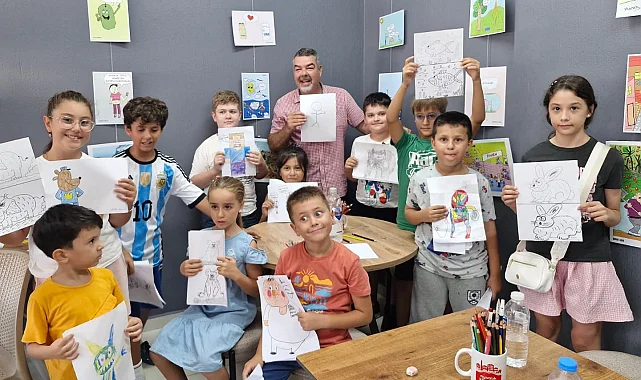 Ayvalık'ta minik sanatçılar karikatür atölyesinde buluştu