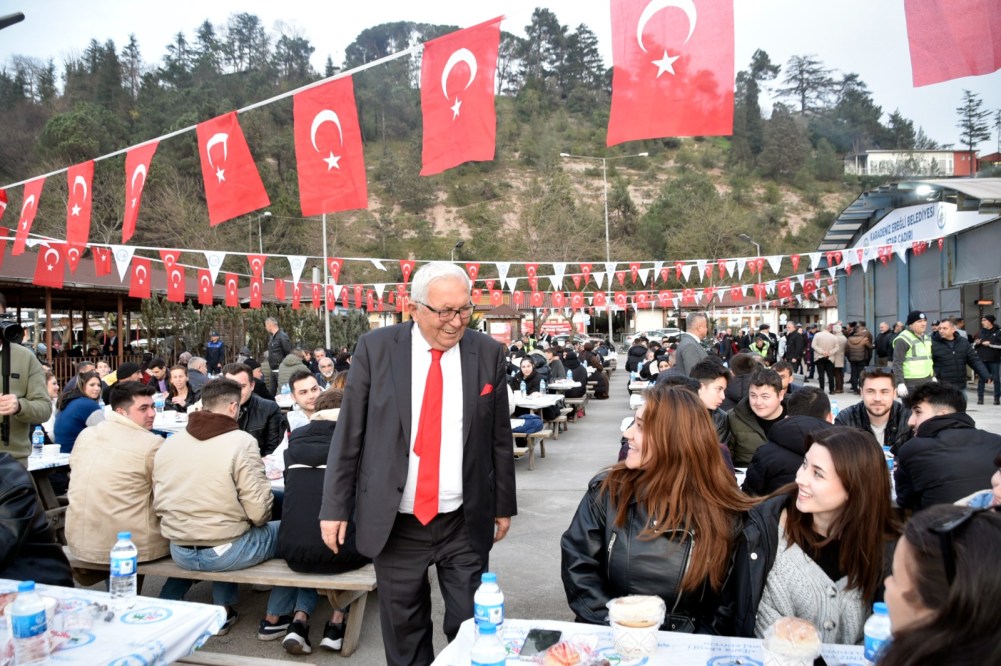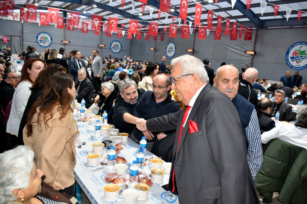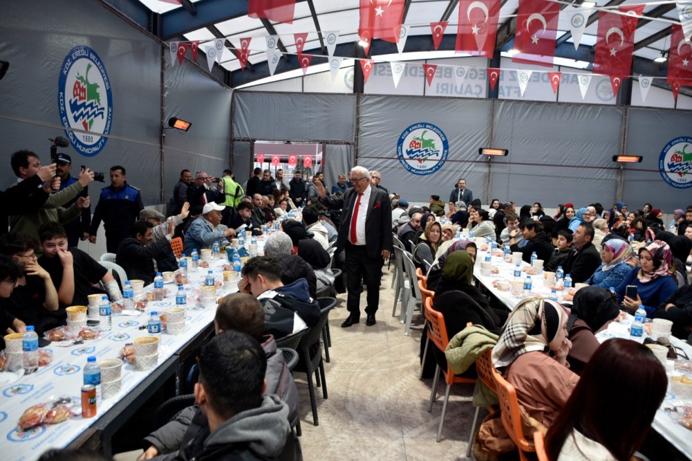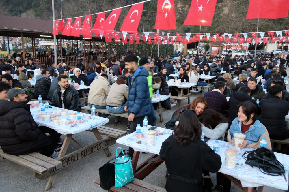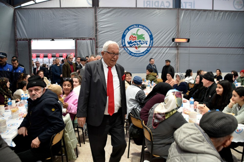 Kdz. Ereğli Belediyesi’nin geleneksel iftar programının ikinci günü de Ereğli halkının yoğun ilgisiyle gerçekleşti. Çocuk, genç, yaşlı, kadın-erkek hep birlikte oruç açtı. Başkan Halil Posbıyık, iftar sofrasını paylaşan hemşehrilerine teşekkür ederek; “Birlik beraberliğimiz hiç bozulmasın” dedi.Kdz. Ereğli Belediyesi, 11 Ayın Sultanı mübarek ramazan ayının gelmesiyle birlikte geleneksel iftar programlarının 2. Gününde bin beş yüz kişiye iftar sofrasını açtı.Erdemir Ofis yanındaki belediye tesislerindeki halk iftarı programına ilk gün olduğu gibi 2. Gün de Ereğli halkı yoğun ilgi gösterdi. Çocuk, genç, yaşlı, kadın-erkek hep birlikte oruç açtı. İftar programına Zonguldak, Ereğli ve Alaplı’dan gelen yerel ve ulusal basın mensupları da katıldı.“İFTAR SOFRAMIZ HERKESE AÇIK” Belediye Başkanı Halil Posbıyık, 30 gün boyunca iftar sofrasının herkese açık olduğunu belirterek şunları söyledi:“Sevgili hemşehrilerimin mübarek Ramazan ayını bir kez daha kutluyor, iftar soframızı paylaşan tüm dostlarımıza şükranlarımı sunuyorum. Bu akşam yine çok güzelsiniz. Zonguldak’tan, Alaplı’dan, Ereğli’den basın mensupları da bu akşamı bizlerle paylaşıyorlar. Allah tuttuğumuz oruçları kabul etsin. Ettiğimiz duaları kabul etsin. Allah bütün aileye, evlatlara, büyüklere, evdekilere, sağlık, sıhhat nasip eylesin. Allah memleketimizi, ülkemizi, İslam alemini her türlü kötülüklerden, belalardan, kötü haberlerden uzak tutsun. Ülkemizde depremler olmasın, kasırgalar olmasın, insanlar üzülmesin, birlik beraberlik içerisinde olsun diye dua ediyoruz. Türk Milleti birlik beraberlik içerisinde olduğu zaman onun yıkamayacağı hiçbir güç yoktur. İnanıyorum ki bu kardeşliğimizi mübarek ayda daha fazla pekiştireceğiz. Allah hepimize sağlık versin. Sizlerle böyle kalabalık bir ortamda iftar yapmak –hepinizin evinde daha güzel yemekler olabilir, olmayabilir ama- halkımızla, her çeşit insanımızla beraber birlikte olmanın mutluluğu ve gururunu yaşıyoruz.-BİRLİKTELİĞİMİZ HİÇ BOZULMAYACAK-Kdz. Ereğli halkı her zaman her türlü dayanışmayı gösterdi. Şükranlarımı sunuyorum. Covid-19’da birlik beraberlik içerisinde el ele vererek maskeleri ürettik, dezenfektan ürettik, bütün evlerimize gönderdik. 400 bin maske imal ettik. Hemen peşinden 11 ilde yüreğimizi yakan deprem oldu. Yine Ereğli halkı mahallelerden, köylerden mont, battaniye, bot, iç çamaşırı aklınıza gelen her türlü ihtiyaç malzemesini bize getirerek 18 tırla deprem bölgesine ulaştırdık. Ereğli halkının yaptığı bu yardımseverliği unutmamız mümkün değil. Allah sizlerden razı olsun, şükranlarımı sunuyorum. Birlikteliğimiz hiç bozulmasın. İşte burada kardeşliğimizi çok güzel sergiliyoruz. Hepinizi saygıyla, sevgiyle selamlıyorum.”Programda hocalar tarafından Kur’an okundu, dualar edildi.