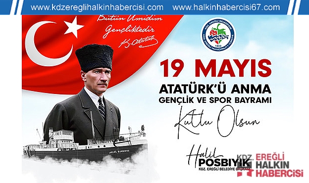 Kdz.Ereğli Belediye Başkanı Halil Posbıyık, 19 Mayıs Atatürk’ü Anma Gençlik ve Spor Bayramı nedeniyle bir mesaj yayımladı.Kdz.Ereğli Belediye Başkanı Halil Posbıyık, 19 Mayıs Atatürk’ü Anma Gençlik ve Spor Bayramı nedeniyle bir mesaj yayımladı.Başkan Posbıyık, 19 Mayıs Atatürk’ü Anma Gençlik ve Spor Bayramı nedeniyle yayımladığı görseli aynen yayımlıyoruz;
