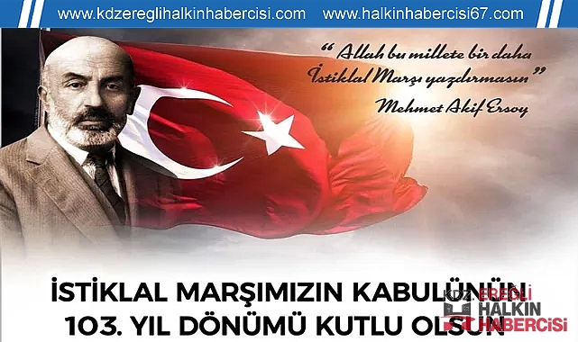 Karadeniz Ereğli Belediye Başkanı ve CHP Belediye Başkan adayı Halil Posbıyık, İstiklal Marşımızın kabulünün 103. yıl dönümünü kutladı; Şehitlerimizi ve İstiklal Marşımızın yazarı Mehmet Akif Ersoy’u andı. Başkan Posbıyık, yayımladığı mesajda şu ifadelere yer verdi:"İstiklal Marşımız, Türkiye Cumhuriyeti’nin kurucusu Mustafa Kemal Atatürk’ün önderliğinde bağımsızlık için mücadele eden milletimizin yaktığı özgürlük ateşinin simgesidir.İstiklal Marşımızın kabulünün 103. yılında, büyük önderimiz Mustafa Kemal Atatürk ve mücadele arkadaşlarını, ülkesi uğruna canını ortaya koyan gazi ve şehitlerimizi, marşımızın sözlerini yazan Mehmet Akif Ersoy’u saygı, minnet ve rahmetle anıyorum."