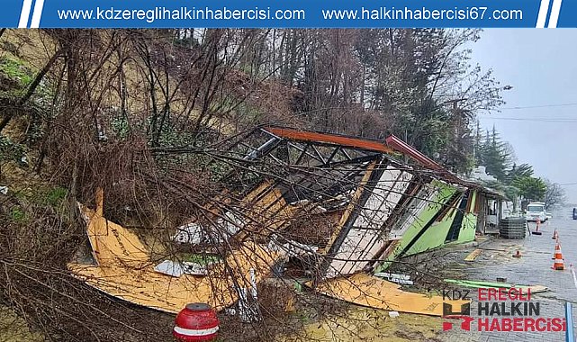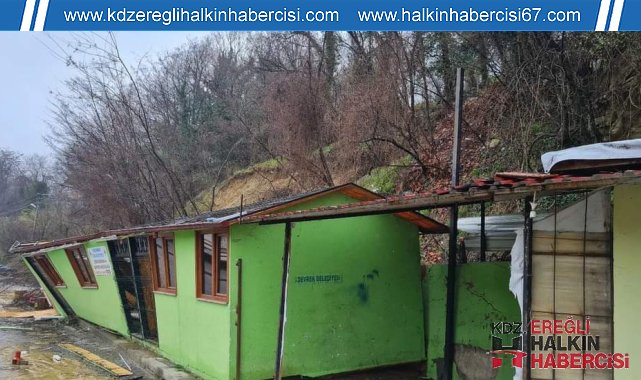 Zonguldak'ın Devrek ilçesinde belediyeye ait temizlik işleri kulübesi, meydana gelen heyelanda kullanılamaz hale geldi.