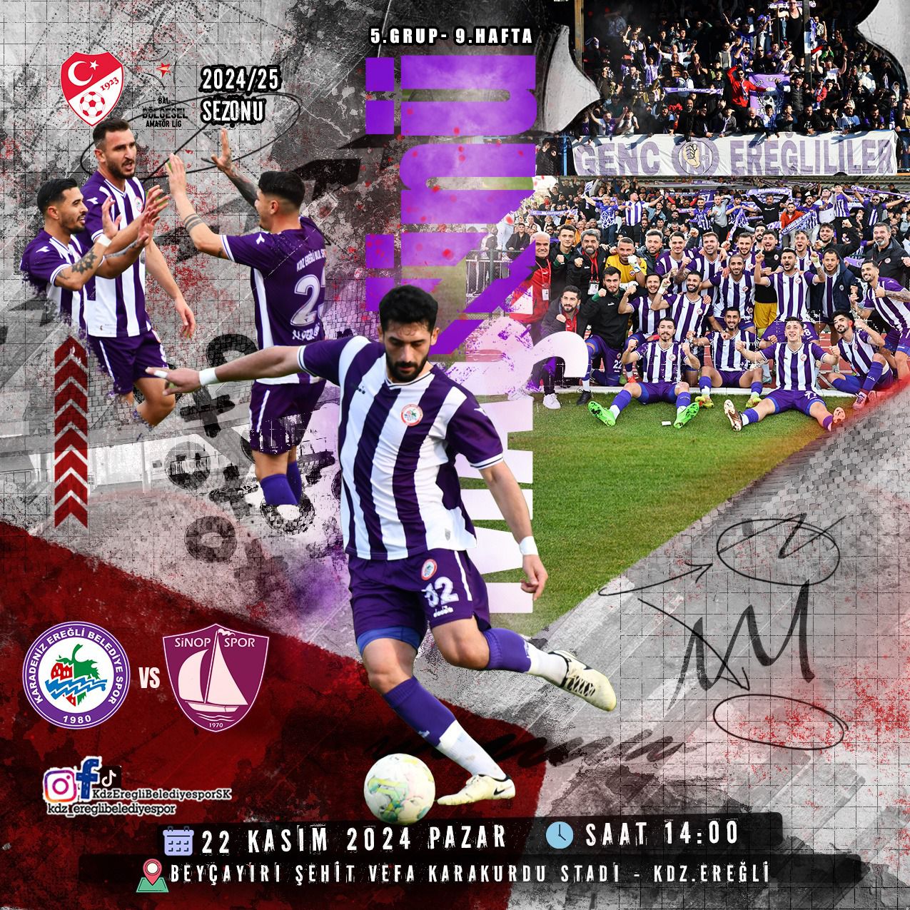 TFF Bölgesel Amatör (BAL) Ligi 5. Grupta mücadele eden ve grupta 24 puan ile lider olan Kdz.Ereğli Belediyespor, sezonun 9. Hafta maçında kendi evinde Sinop Spor’u konuk ediyor.