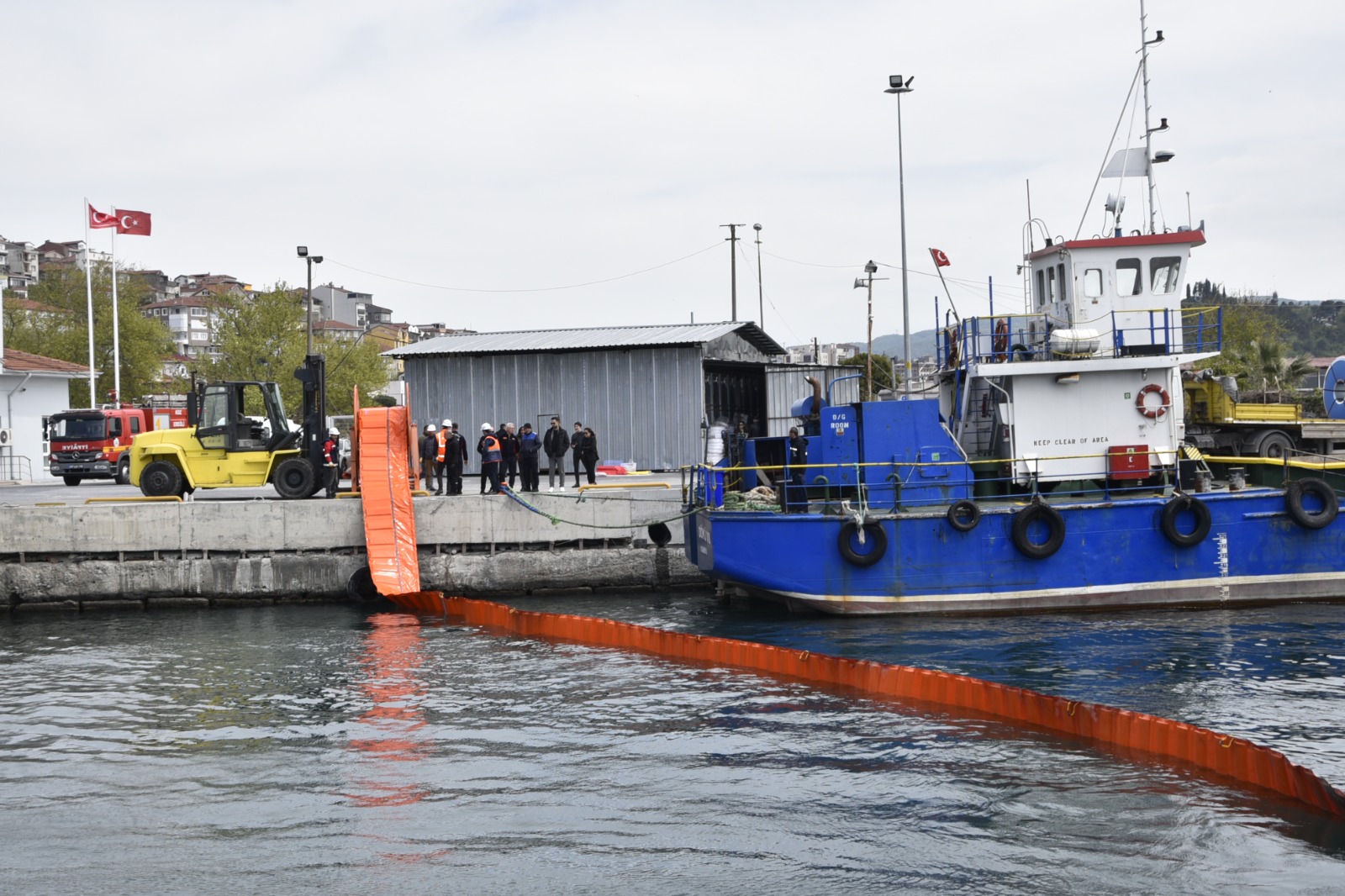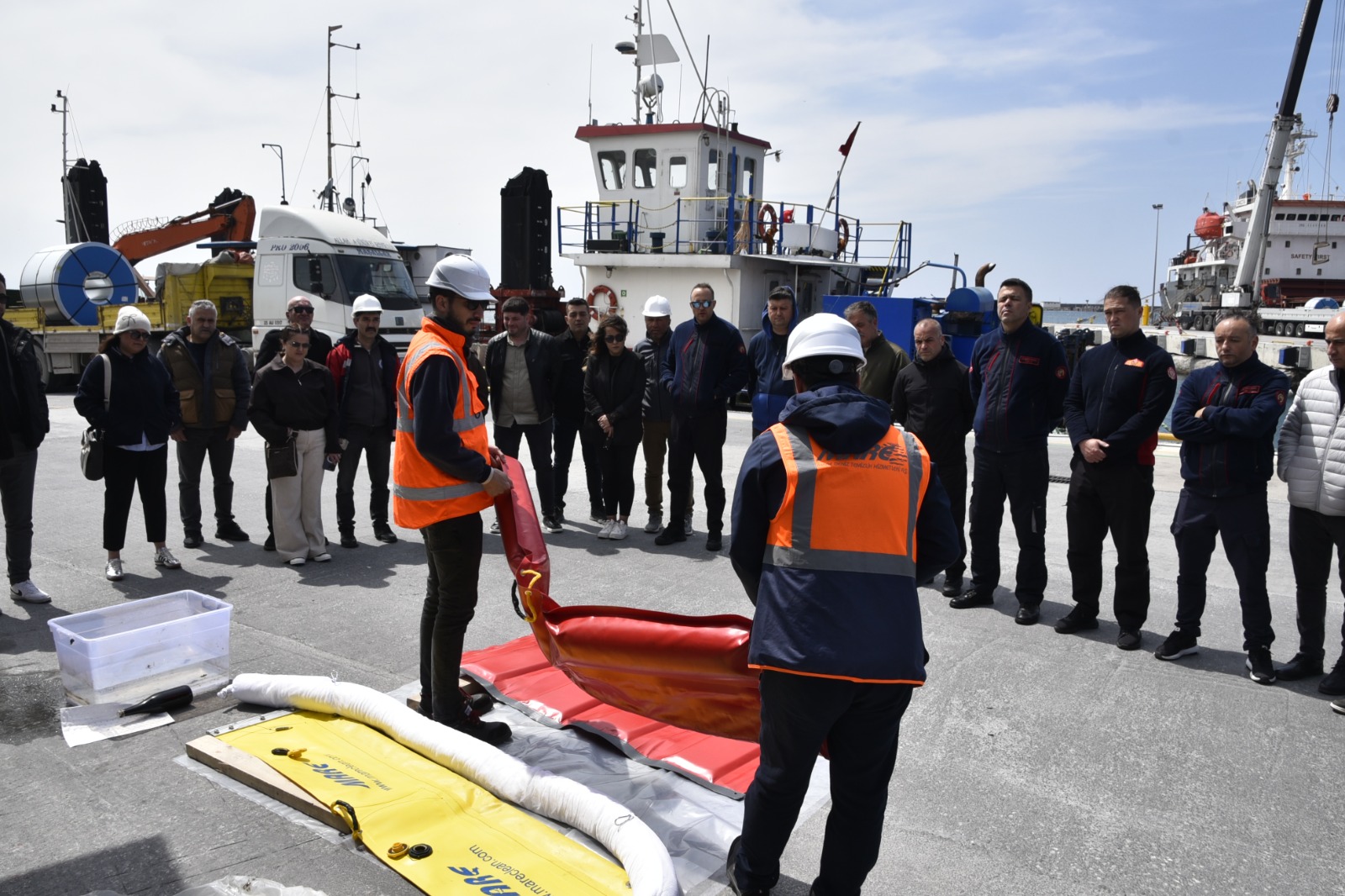 Deniz Kirliliğine Acil Müdahale Tatbikatı gereği, liman içinde oluşan deniz kirliliğine müdahale edildi. Eğitim ve Tatbikat Koordinatörleri Özhan Kırac ve Samet Sertel tarafından personele kullanılacak malzemeler tanıtıldı, teknik bilgiler aktarıldı, tatbikat başarılı şekilde sonuçlandırıldı.