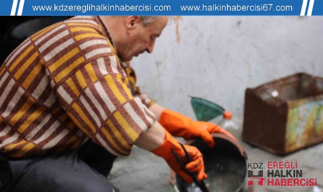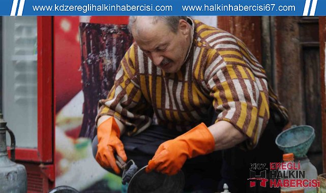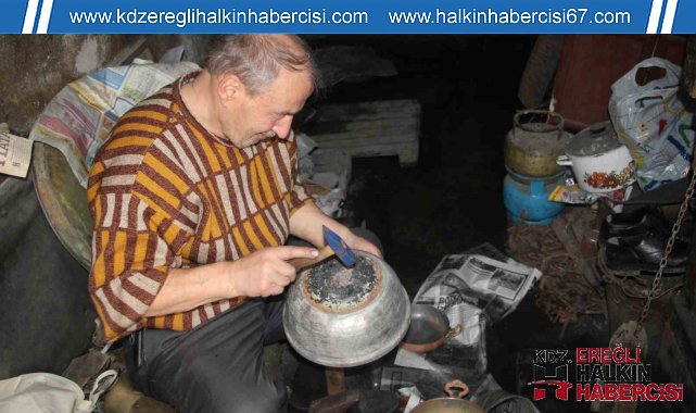 Zonguldak'ın Devrek ilçesinde yaşayan kalaycı ustası Hüseyin Macit Çekeneci mesleğiyle teknolojiye rağmen sürdürüyor.
