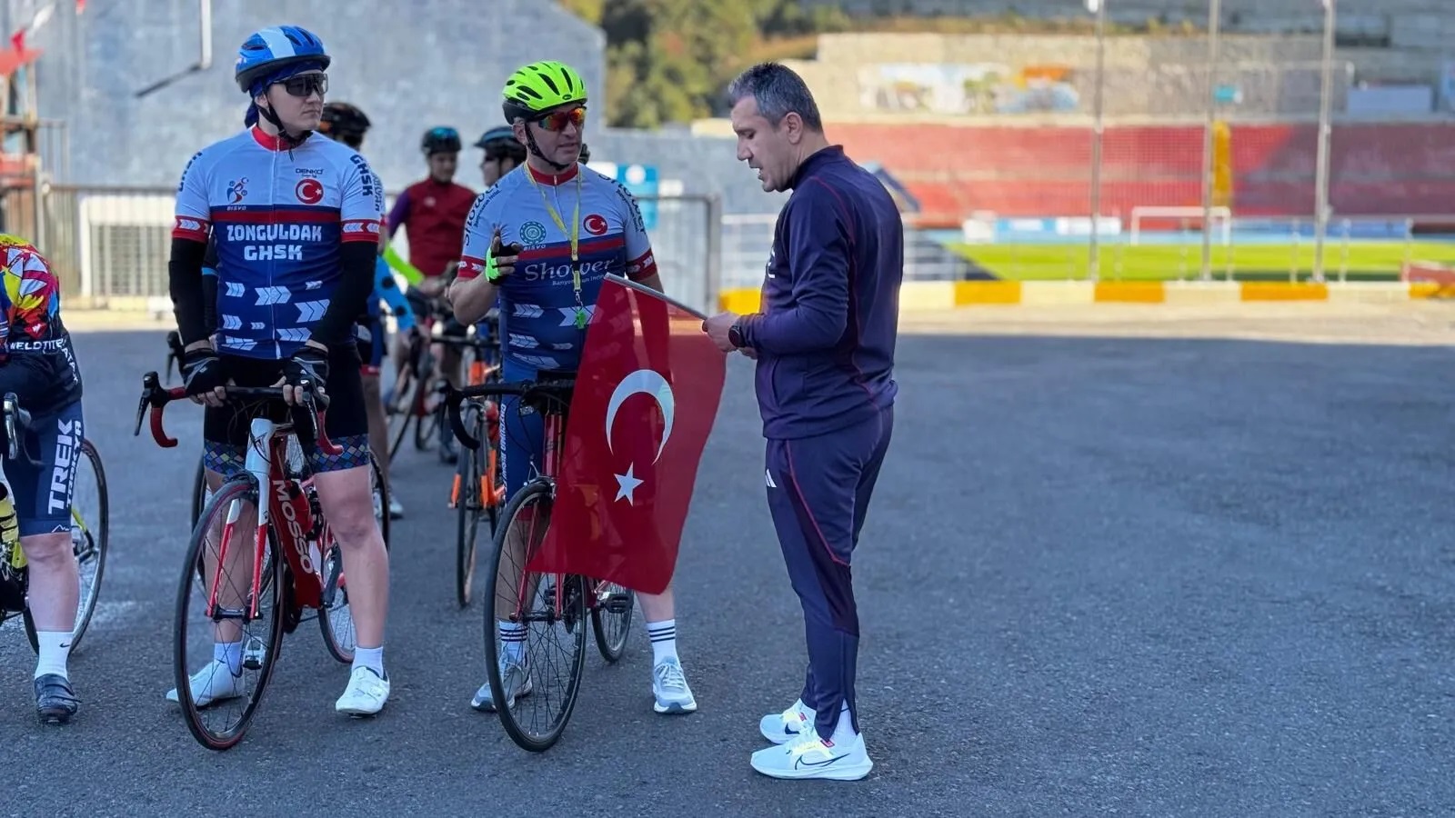 Cumhuriyetimizin kuruluşunun 101. yılı kutlamaları ve Zonguldak ilinin il oluşunun 100. Yılı kutlamaları kapsamında 3 gün sürecek olan Bisiklet Yol Yarışının startı verildi.Bugün başlayan yarışların ilk gününde aksiyon ve heyecan doruktaydı.GEREKLİ TEDBİRLER ALINDIBisiklet Yol Yarışları esnasında güzergahlarda gerekli tedbirler alınırken yarışmacılar birbiriyle kıyasıya yarıştı.HAKAN YÜKSEL SPORCULARA BAŞARI DİLEDİYarışlar hakkında açıklamada bulunan Zonguldak Gençlik ve Spor İl Müdürü Hakan Yüksel şunları söyledi: “Cumhuriyetimizin kuruluşunun 101. yılı kutlamaları ve Zonguldak ilinin il oluşunun 100. Yılı kutlamaları kapsamında 3 gün sürecek olan Bisiklet Yol Yarışının startını İl Müdürlüğümüz tesislerinden verdik. İlk gün yapılan Zonguldak Ereğli etabını sporcularımız başarı ile tamamladılar. 2. gün etabı Ereğli Devrek arasında yapılacak olup, 3. gün ise 29 Ekim 2024 Salı günü Devrek' ten başlayıp yine Cumhuriyet Bayramı Resmi töreninde Karaelmas Kemal Köksal Stadyumunda tamamlanması planlanmaktadır. Organizasyonumuzun gerçekleşmesinde gayretle çalışan tüm sporcularımıza ve mesai arkadaşlarıma teşekkür ediyor, 3 gün sürecek olan Bisiklet Yol Yarışının kazasız belasız tamamlanmasını diliyorum."Öte yandan : Cumhuriyetin 101.yılı dolayısıyla gerçekleştirilen organizasyonda ilk olarak Zonguldak’tan Ereğli ve Alaplı’ya ardından Alaplı’dan Ereğli, Babadağ üzerinden Devrek ve Çaycuma ilçelerine son olarak Çaycuma’dan Zonguldak’a toplamda ise 216 km’lik turda renkli görüntüler oluştu.Zonguldak Gençlik ve Spor İl Müdürlüğünde sona eren bisiklet turunda katılım sağlayan bisiklet sporcuları Zonguldak Valisi Osman Hacıbektaşoğlu’na şanlı Türk bayrağını teslim ettiler. Ardından Zonguldak Valisi Osman Hacıbektaşoğlu tarafından bisikletçilere çeşitli hediyeler verildi.