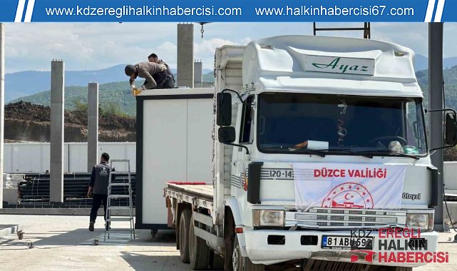 DÜZCE (İHA) – Kahramanmaraş merkezli meydana gelen depremlerin ardından kolları sıvayan Düzce Valiliği, 4 farklı konteyner üretim merkezinde günlük 150 üretim yapıyor. İlk etapta bin olan konteyner hedefi, 25 bine çıkarıldı.