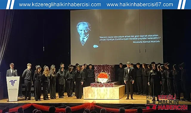 Türkiye Cumhuriyeti'nin kurucusu Gazi Mustafa Kemal Atatürk, ebediyete intikalinin 86. yılında Tatoğlu Kültür Merkezi'nde tören düzenlendi.Saygı duruşu ve İstiklal Marşı'nın okunmasının ardından Kdz. Ereğli Anadolu Lisesi tarafından hazırlanan “Dirilişin Adı Mustafa Kemal” oratoryosu, katılımcılar tarafından ilgiyle izlendi.Duygusal anlara sahne olan oratoryoda, Gazi Mustafa Kemal Atatürk’ün milli mücadeleye öncülük eden liderliği ve Cumhuriyet’in kuruluşu etkileyici bir anlatımla sahnelendi.Program sonunda Kaymakam Mehmet Yapıcı, emeği geçen öğrencilere ve öğretmenlere teşekkür ederek, Atatürk’ün ideallerinin genç nesiller tarafından yaşatılmasının önemine vurgu yaptı.Programa ilçe protokolünün yanı sıra öğrenci ve öğretmenler katıldı.