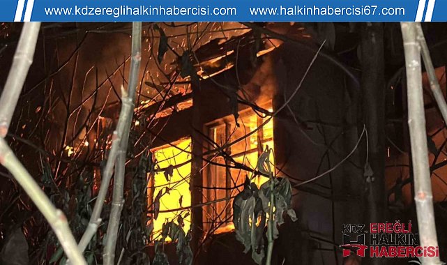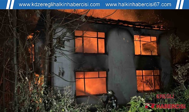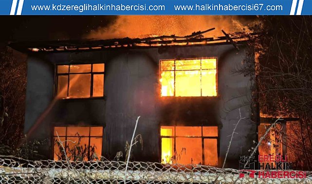 Düzce'de iki katlı evde yangın çıktı. Yangını söndürme çalışmaları devam ediyor.
