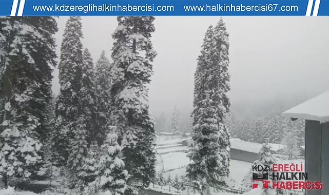 Düzce'nin yüksek kesimlerinde mart ayında kar yağışı etkili oluyor. Sinekli Yaylası'nda da etkili olan kar yağışıyla birlikte yeşil alanlar beyaza büründü.