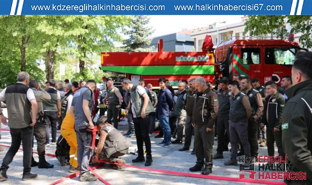 Düzce Orman İşletme Müdürlüğü tarafından orman yangınlarıyla mücadele hazırlıkları dahilinde muhtemel orman yangınlarına karşı eğitim tatbikatı düzenlendi.