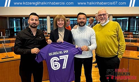 Kdz.Ereğli Belediyespor Yönetim Kurulu Üyesi İlhan Okur, Zonguldaklıların yoğun olarak bulunduğu Almanya’nın Gelsenkirchen kentinde ziyaretlerde bulundu.Kdz.Ereğli Belediyespor Yönetim Kurulu Üyesi İlhan Okur, Zonguldaklıların yoğun olarak bulunduğu Almanya’nın Gelsenkirchen kenti Belediye Başkanı Karin Welge ve Avrupa Karadeniz Ereğlililer Derneği Yönetimini ziyaret ederek, Karadeniz Ereğli Belediyespor forması hediye etti.Ziyaret programı nedeniyle Almanya'ya giden Yönetim Kurulu Üyesi İlhan Okur, Kdz Ereğli Belediyespor adına Almanya’nın 270.000 nüfuslu ve 20.000 Zonguldaklı hemşerimizin yaşadığı Gelsenkirchen’de Büyükşehir Belediye Başkanı Sn. Karin Welge ve ekibini ziyaret ederek, bölgemiz ve futbol takımınız hakkında bilgiler verdi.Welge, ziyaretten dolayı memnuniyetini belirterek, ligde önemli bir başarı yakalayan Karadeniz Ereğli Belediyespor’a başarı temennisinde bulundu.AVRUPA EREĞLİLİLER DERNEĞİ...Avrupa Karadeniz Ereğlililer Dernek Başkanı İsmail Aydın ve yönetim kurulu üyeleri tarafından ağırlanan İlhan Okur, dernek başkanı Aydın ve yönetim kuruluna desteklerinden dolayı teşekkür ederek Karadeniz Ereğli Belediyespor forması hediye etti.Karadeniz Ereğlili gurbetçi Fatma ve Kemal Budak ailesi de "Her Eve Bir Forma" kampanyasına katılarak takıma destek oldular.