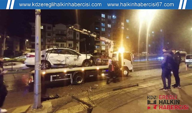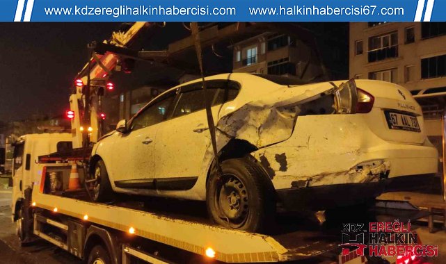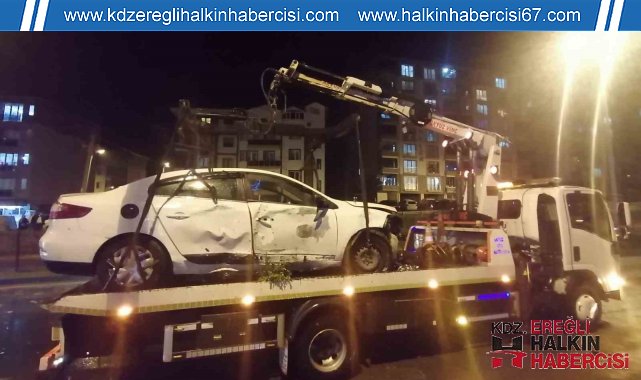 Zonguldak'ın Ereğli ilçesinde meydana gelen trafik kazasında 2 kişi yaralandı.Kaza, gece saatlerinde Kepez Mahallesi Prof. Muammer Aksoy Caddesi üzerinde meydana geldi. İddiaya göre, Devrek yol ayrımı istikametine seyir halinde olan 67 AAE 176 plakalı otomobil yine aynı istikamette ilerleyen 67 AAL 737 plakalı otomobilin şeridine geçmesi üzerine, 67 AAL 737 plakalı aracın sürücüsü direksiyon hakimiyetini kaybetti ve karşı yola geçip yol kenarında refüje çarparak durabildi. Çarpmanın şiddeti ile araçta maddi hasar meydana gelirken, sürücü ve yolcu da yaralandı. Bu sırada kaldırımda kimsenin olmaması faciayı önledi. Kazayı gören vatandaşlar durumu 112 Acil Çağrı Merkezine bildirdi. İhbar üzerine olay yerine gelen sağlık ekipleri itfaiye ekiplerinin yardımıyla yaralıları otomobilden çıkarıp sağlık ekiplerine teslim etti. İlk müdahaleleri olay yerinde yapılan yaralılar ardından Ereğli Devlet Hastanesine kaldırıldı. Kazaya karışan diğer aracın sürücüsü ise ifadesi alınmak üzere karakola götürülürken, otomobiller olay yerine gelen çekiciler vasıtasıyla kaldırıldı.Kazayla ilgili soruşturma başlatıldı.