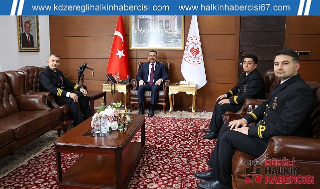 TCG Karayel Gemisi Komutanı Deniz Binbaşı Çağrı Şimşek ve Başçarkçı Deniz Üsteğmen Bektaş Fırat Polat, Vali Osman Hacıbektaşoğlu’nu ziyaret etti.