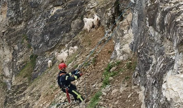 Kocaeli Büyükşehir İtfaiyesi, sadece yangınlara müdahale etmekle kalmıyor, aynı zamanda yardıma muhtaç hayvanların da yardımına koşuyor. Bu kapsamda İzmit Sarıhocalar mevkiinde sarp arazide mahsur kalan 15 keçi ve oğlak, Büyükşehir Belediyesi itfaiye ekiplerinin başarılı operasyonuyla kurtarıldı.