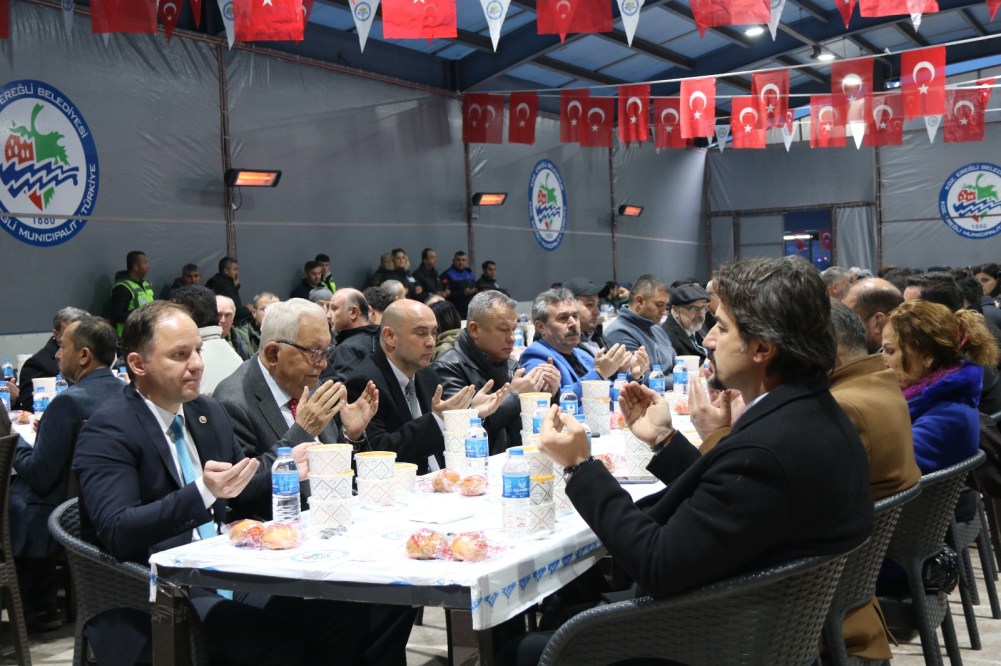 Karadeniz Ereğli Belediyesi Ramazan ayı boyunca düzenlediği iftar programlarına devam ediyor.Başkan Halil Posbıyık, Erdemir Ofis Yolu üzerinde yapılan restoranda tüm halkı iftar sofrasına davet etti.Açıklama şu şekilde, ‘Ramazan ayı boyunca Erdemir Ofis Yolu üzerinde yeni yaptığımız restoranda halkımızla aynı iftar sofrasında çocuk, genç, yaşlı, kadın-erkek halkımızla bir araya gelmeye devam ediyoruz.Bugünkü iftarımızı, CHP Genel Başkan Yardımcısı, Zonguldak Milletvekili Deniz Yavuzyılmaz, CHP Zonguldak Milletvekili Eylem Ertuğrul, İl Başkanı Devrim Dural, Kdz. Ereğli İlçe Başkanı Ali Kocamanoğlu’nun da katılımıyla yaptık.İftara her gün sivil toplum kuruluşlarını, meslek odalarını da davet ediyoruz. Bugün Yöresel Dernek Evleri Başkan, yönetici ve üyelerini misafir ettik.İftar soframız herkese açık.’