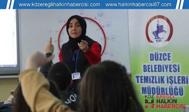 Düzce Belediyesi tarafından başlatılan 'Temiz Şehir Düzce' kampanyası çerçevesinde 'Sıfır Atık' çalışmalarına yönelik israfla mücadele eğitimleri devam ediyor.