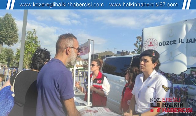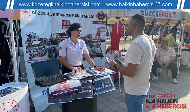 DÜZCE (İHA) – Düzce Belediyesi'nin koordine ettiği Dünya Düzce Günleri'nde jandarma ekipleri ile Aile ve Sosyal Hizmetler ekipleri tarafından binlerce kişiye 'Kades' uygulamasının tanıtımı yapıldı.