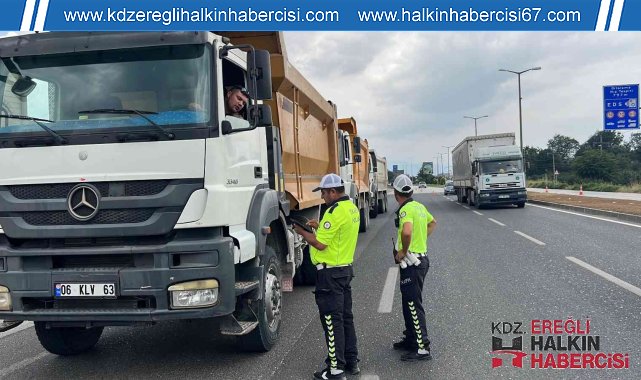 Düzce İl Emniyet Müdürlüğü ekipleri, kamyon ve çekicilere yönelik denetim gerçekleştirdi. D-100 Karayolu Sakarya istikametinde gerçekleştirilen denetimlerde kamyon ve çekicilerin yanı sıra binek araçlarda kontrol edildi. Özellikle çekicilerin dorselerinde yüklü olan malzemelerin güvenli olarak sabitlenip sabitlenmediğe bakan ekipler, malzemeleri düzgün sabitlemeyen, fazla yük alan sürücülere cezai işlem uyguladı.