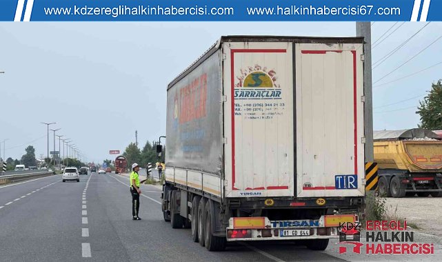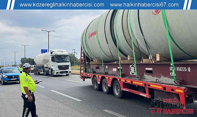 DÜZCE (İHA) – Düzce'de kamyon ve çekicilere yönelik trafik denetimi gerçekleştirildi. Denetimlerde, çekicilere yüklü olan malzemeleri güvenli olarak sabitlemeyen sürücülere ceza yazıldı.