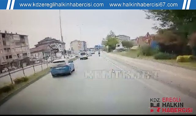 Zonguldak'ın Karadeniz Ereğli ilçesinde hatalı dönüş yapan otomobil ile motosikletin çarpıştığı trafik kazasında 1 kişi yaralandı. Kaza anı saniye saniye kameralara yansıdı.Kaza, Ereğli ilçesine bağlı Devrek Yolu Caddesi üzeri kavşağında meydana geldi. İddiaya göre, seyir halinde olan A.K. idaresindeki 67 NN 018 plakalı hafif ticari kamyonet ani dönüş yapan Ş.Ü. idaresindeki 67 ACM 526 plakalı motosiklete çarptı. Çarpmanın etkisiyle devrilen motosiklet sürücüsü A.K. yere düşerek yaralandı. Kazayı gören çevredeki sürücüler yaralı motosiklet sürücüne ilk müdahalenin ardından olay yerine sağlık ekiplerince ambulansa alarak Ereğli Devlet Hastanesine kaldırdı.Öte yandan kaza anı saniye saniye arkadan gelen halk otobüsünün araç içi kamerasına yansıdı.