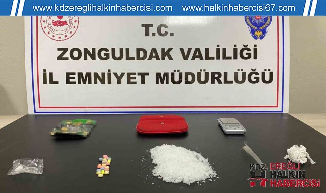 Kdz Ereğli İlçe Emniyet Müdürlüğünce yapılan uygulama ve denetimlerde 2 şüpheli şahıs yakalandı.Zonguldak'ın Kdz İlçe Emniyet Müdürlüğü Narkotik ve Motorsikletli Polis Timlerince yapılan uygulama ve denetimlerde, B.C. isimli şüpheliden bir miktar 1 gr metamfetamin uyuşturucu ele geçirildi. Yine yapılan Çarşı Mahalle Bekçilerince denetimlerde Yakalanan M.Y,'nin üzerinde 5 gram esrar maddesi, 1 gram metamfetamin maddesi ve 1 adet muştaele geçirildi. Şüpheliler hakkında Uyuşturucu veya Uyarıcı Madde Kullanma suçlarından adli işlem yapıldı.