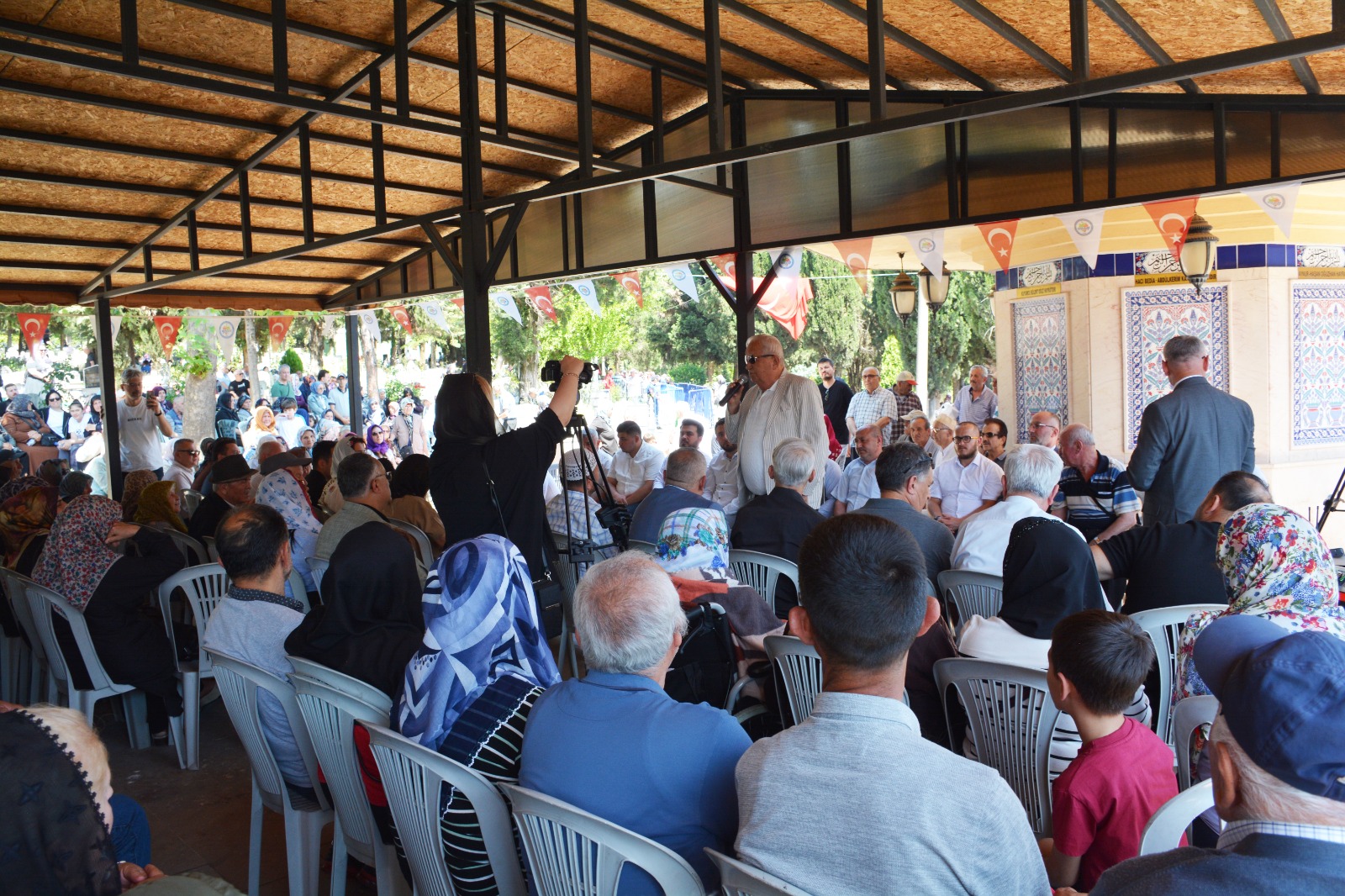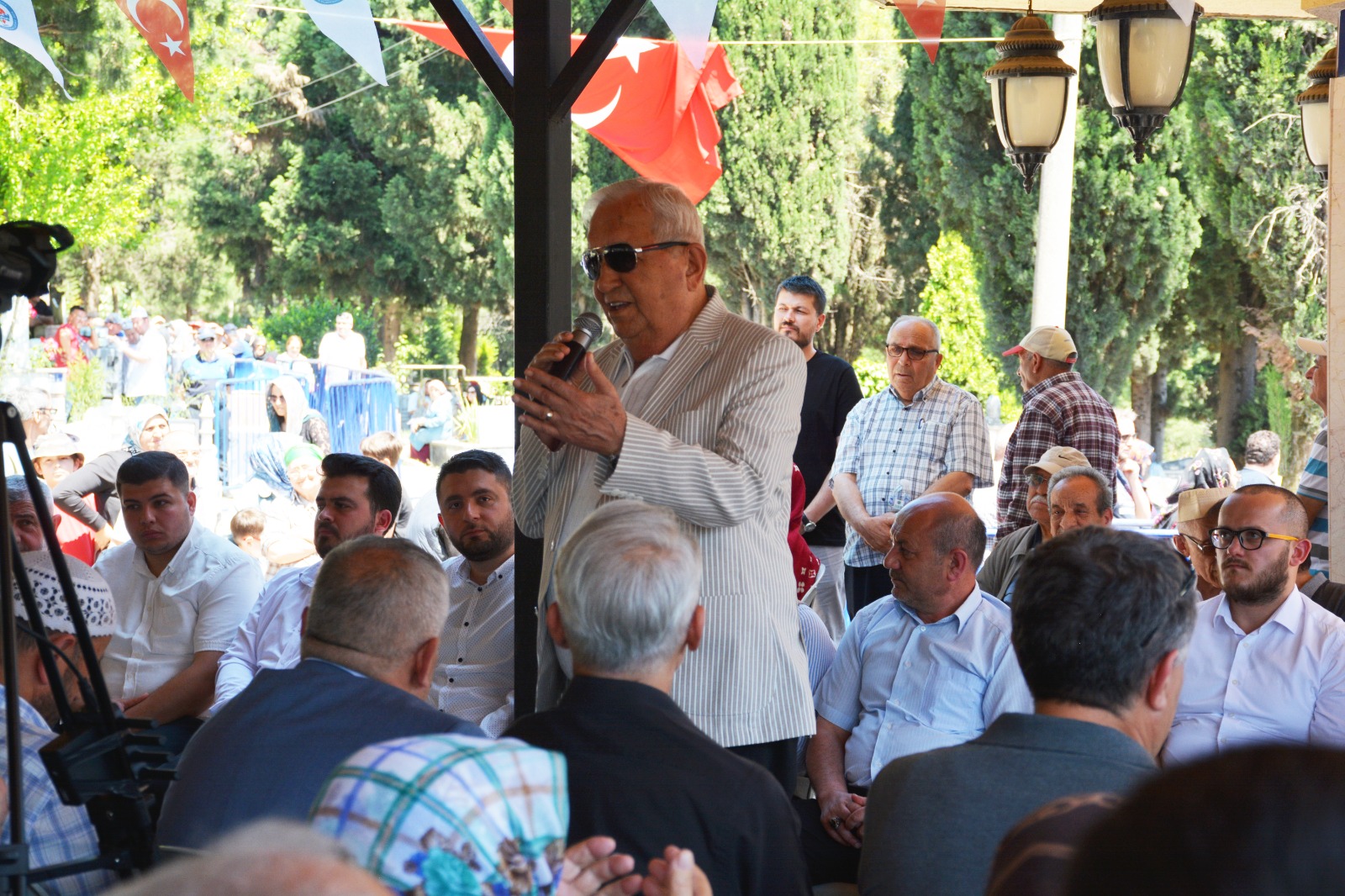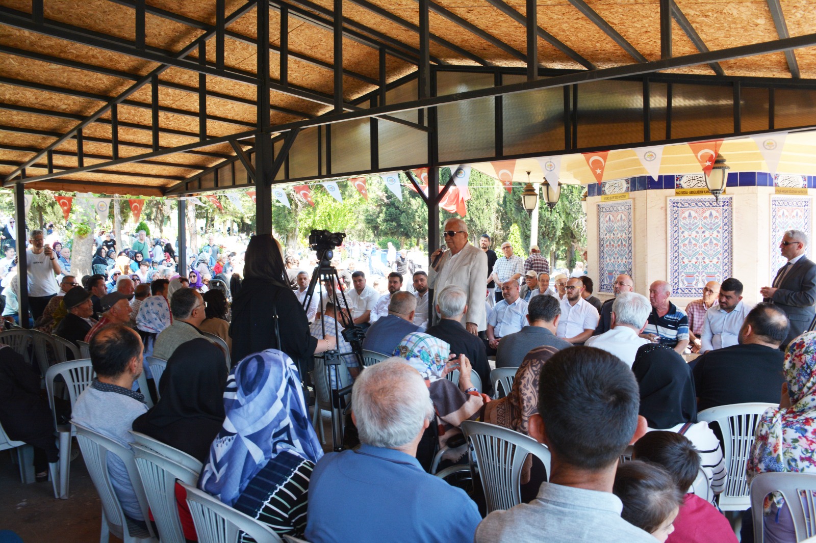 “Sevgili hemşehrilerim, değerli misafirlerimiz, şükrediyoruz bu arefe günü de tekrar bir araya geldik, buluştuk. Tam 26 senedir bu geleneği koyduk ve devam ettiriyoruz. Hem Ramazan hem Kurban bayramı arefesinde sayın müftümüzün önderliğinde çok değerli hocalarımız yüreğimizin pasını siliyorlar. Onlardan Allah razı olsun. 26 senedir buraya gelip dua edenlerden aramızda eksilmeler var. Aramızdan ayrılanlar var. Onlar o gün dua ediyorlardı, bugün biz onlara dua ediyoruz. İnşallah bizden sonra gelen nesiller de (bu gelenekleri koymamızın sebebi o) onlarda bize dua edecekler. En büyük dileğimiz, amacımız o. Ben özellikle müftüme ve değerli hocalarıma şükranlarımı sunuyorum. Allah onlardan razı olsun. Yeri göğü inlettiler, mezarların öbür ucuna kadar dualarımız duyuldu. Her Ramazan Bayramı arifesinde buraya kamyonlarla çiçekler getiriyoruz ve çiçek fidelerinin mezarlığa dikilmesini sağlıyoruz. Kurban Bayramı’ndaki geleneğimizde pilav, kavurma ve ayran dağıtacağız. Allah hepinize sağlık sıhhat versin. Çoluğunuzla, çocuğunuzla, evlatlarınızla, büyüğünüzle yüce Allah’ım bir dahaki Kurban Bayramı’na bizleri sağ salim erişmeyi nasip etsin. Tüm hemşehrilerimin bayramını kutluyorum.”