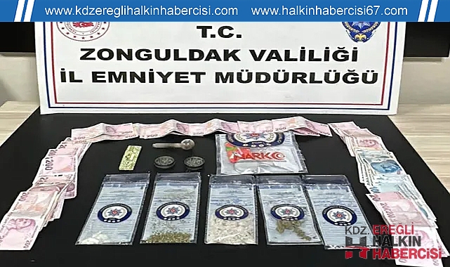 Zonguldak Emniyet Müdürlüğü, 31.07.2025 günü Kdz. Ereğli ve Kilimli ilçelerinde operasyon gerçekleştirdi.Narkotik operasyonunda; O.Ü., C.İ., T.E., F.B., O.Ç., A.Ç., G.Ç., Ü.D., S.D., F.Ç., A.K., S.K., Z.Y., N.Ç. ve A.Y. isimli 15 şüpheli yakalandı.Operasyonda; 152 adet Sentetik Ecza Hap, 63 gram Metamfetamin, 15 gram Esrar, 21 adet Tabanca Mermisi, 2 adet Uyuşturucu Kullanma Aparatı ve 11.000 TL Para ele geçirildi.F.B., Z.T., N.Ç. ve A.Y. isimli şüphelilere "Uyuşturucu veya Uyarıcı Madde Kullanmak" suçundan adli işlem yapılırken, O.Ü., C.İ., T.E., O.Ç., A.Ç., G.Ç., Ü.D., S.D., F.Ç. ve A.K. isimli 10 şüpheli ise "Uyuşturucu veya Uyarıcı Madde Ticareti Yapmak" suçundan gözaltına alındı.Adli makamlara sevk edilen A.Ç., G.Ç., O.Ç., S.D., A.K., F.Ç. ve S.K. isimli şüpheliler adli kontrol şartıyla serbest kalırken; O.Ü., C.İ., T.E. ve Ü.D. isimli şüpheliler tutuklanarak cezaevine gönderildi.Zonguldak Valiliğinden yapılan açıklamada, "Vatandaşlarımızın huzur ve güvenliği için uyuşturucu veya uyarıcı madde satan ve kullanan şahıslara yönelik mücadelemiz kararlılıkla devam edecektir" denildi.