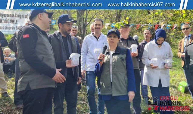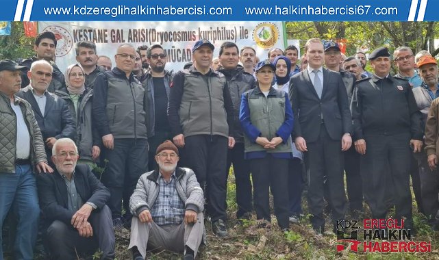 Bartın Ulus ilçesi Kumluca beldesinde Kestane Ormanları zararlı gal arısı böceklerinden korunmasına içkarşın faydalı böçek salındı.Kestane ormanlarına zarar veren Dryocosmus kuriphilus- Kestane Gal arısı ile mücadele için ürettilen yararlı yırtıcı Torymus sinensisler Bartın'da kestane ormanlarına salındı. Bartın-Ulus İlçesi Kumluca beldesi Dibektaş ve Kirsinler Köylerinde, kestane gal arısına karşı faydalı böcek olan Torymus Sinensis'in kestane ormanlarına salınması etkinliğinde Bartın Valisi Dr. Nurtaç Arslan katılarak bölge için önem arz eden kestaneyi korumaya ve doğanın dengesine ulaşmasına yönelik yapılan orman zararlılarıyla mücadele çalışmalarında emeği geçen herkese Orman Genel Müdürlüğü nezdinde Zonguldak Orman Bölge Müdürlüğüne teşekkür ettiğini belirtti.Orman Bölge Müdürü Faruk Bayraktaroğlu yaptığı konuşmada şöyle dedi:"Eğer orman vatansa ve vatanı korumak kutsalsa o zaman genç-yaşlı, kadın-erkek hatta kurt, kuş ve böcek hepimiz askeriz. Kestane Gal Arısına karşı bugün Orman Zararlılarıyla Mücadele Laboratuvarımızda ürettilen bin 650 adet faydalı böceği ormanlarımıza salıyoruz. Bölge Müdürlüğümüzce toplumun ormanlardan beklentilerini en iyi şekilde karşılamak ve ormanların gördüğü hizmetleri gelecek nesillerin yararlanmasına sunmak, ormanların iyi bir şekilde korunması ile sağlanabilir.Unutulmamalıdır ki, orman yangınları kalp krizi gibi anlık zarar verirken, böcek zararları ise kanser gibi yıllarca mücadele yapmayı gerektirir. Böceklerle mücadele oldukça masraflı ve zahmetlidir. Çevreye zararsız olan biyoteknik ve biyolojik mücadeleye daha çok önem veriyoruz. Bu kapsamda her yıl biyolojik mücadele çalışmalarını artırmakta, böceklerle mücadele çeşitli yöntemler uygulamaktayız. Salınan bu böcekler, ormanlarımıza zarar veren böceklerle mücadelemizde bizim en büyük yardımcılarımızdır. Doğada biyolojik denge için faydalı böcek popülasyonu yeterli sayıya ulaşıncaya kadar kestane gal arısının yoğun zarar yaptığı mıntıkalarda faydalı böcek salımı yapılmaya devam edilecektir."Bartın Orman Fakültesinden Doç Dr. Yafes Yıldız da etkinliğe katılarak Türkiye'de ve dünyada kestane gal arısına karşı mücadelede yapılan bilimsel çalışmalar hakkında bilgiler verdi. Biyolojik Mücadele etkinliğine Ulus ilçe Kaymakamı Mehmet Sadık Kılıç, Bartın İl Jandarma Komutanı Kdm. Albay Ersin Aslan, Kumluca Belediye Başkanı İsmail Can, Bölge Müdür Yardımcısı Necmettin Aşçı, Bartın ve Ulus İşletme Müdürleri, Şube Müdürleri, İşletme Şefleri orman mühendisleri ve orman köylüsü vatandaşlar katıldı.