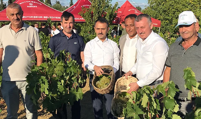 Kocaeli Büyükşehir Belediyesi'nin gübre ve mazot desteğiyle yetiştirilen üzümlerin hasadı Başkan Tahir Büyükakın ve Vali İlhami Aktaş'ın katılımıyla gerçekleşti