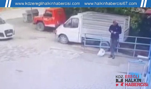 Zonguldak'ta bir köpek, marketin önüne sahibinin poşetle bıraktığı tavuğu alarak uzaklaştı. O anlar güvenlik kamerasına yansıdı.