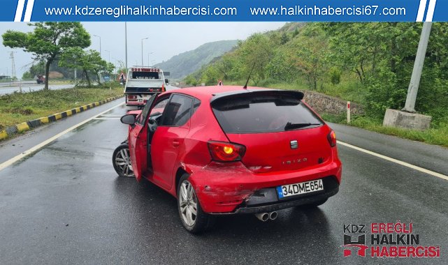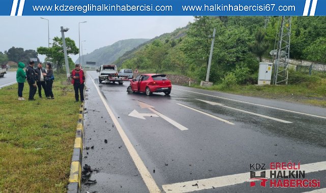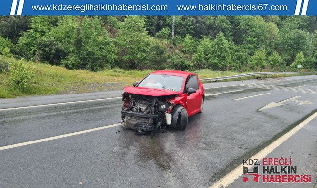 Zonguldak'ın Alaplı ilçesinde lastiği patlayan otomobil bariyerlere çarparak durabildi, otomobilde maddi hasar meydana geldi.