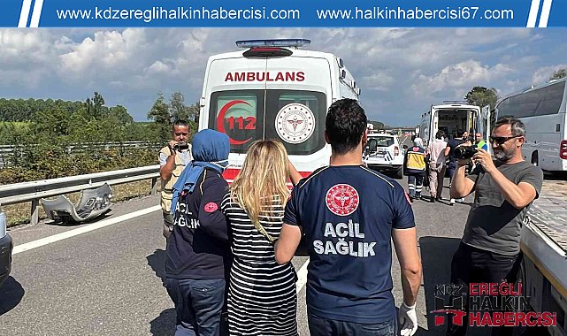 TEM Otoyolu Düzce kesiminde karayolları ekiplerinin yol bakım çalışması nedeniyle daralan yolda zincirleme trafik kazası meydana geldi. Kaza Düzce gişelerine 3 kilometre kala Ankara istikametinde karayolları ekiplerinin yol yapım çalışması nedeniyle daralan yolda meydana gelen kazada 4 otomobil çarpıştı. Çarpışmanın etkisiyle otomobiller hurdaya dönerken otomobillerde bulunan Feyzanur Y., Leyla Y., Mehmet Y., Zeynep Y. Halim Y., Yahya Serdar T. Gülseren T., yaralandı. Yaralılara ilk müdahale olay yerine gelen sağlık ekipleri tarafından yapıldı. Yaralılar, Düzce Atatürk Devlet Hastanesi ve Düzce Üniversitesi Hastanesi'nde tedavi altına alındı.