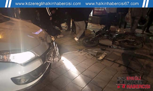 Zonguldak’ın Çaycuma olan motosiklet ile otomobilir çarpıştığı kazada 2 kişi yaralandı. Zonguldak’ın Çaycuma olan motosiklet ile otomobilir çarpıştığı kazada 2 kişi yaralandı. Kaza anı güvenlik kamerasına yansıdı. Edinilen bilgiye göre kaza, Nihat Kantarcı Caddesi üzerinde saat 21.30 sıralarında meydana geldi. Çarşı merkezinden gelen S.A. idaresindeki 67 ZF 622 plakalı otomobil, Barbaros Caddesi’ne girmek üzere iken Nadır mevkiinden çarşı istikametine giden M.B. yönetimindeki 67 ADP 787 plakalı motosikletle çarpıştı. Kazada motosiklette sürücüsü M.B. ile yolcu E.Ç. yaralandı. Bölgeye çok sayıda 112 Acil Sağlık ile polis ekibi sevk edildi. Yaralılar, kişi sağlık ekiplerinin ilk müdahalelerinin ardından ambulanslarla Çaycuma Devlet Hastanesi’ne kaldırılarak tedavi altına alındı. Öte yandan kaza anı bir iş yerinin güvenlik kamerasına yansıdı. Polis kazayla ilgili inceleme başlattı.