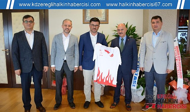 Müdürler ziyaretin anısına Rektör Prof. Dr. Nedim Sözbir'e Milli takım forması hediye ettiler.