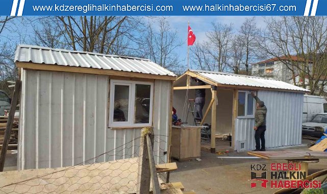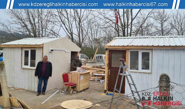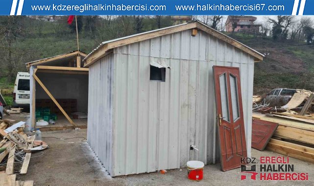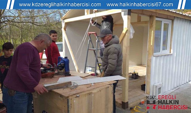 Zonguldak'ın Alaplı'da depremzedelerin barınma sorununa katkı sağlaması için muhtarlar tarafından hayata geçirilen proje çerçevesinde 8 günde gece gündüz çalışılarak üretilen 2 parçadan oluşan ahşap prefabrik ev Kahramanmaraş Elbistan ilçesine götürmek üzere yola çıktı.Alaplı Muhtarlar Derneği Başkanı ve Çamlıbel köyü muhtarı Mithat Mandacı ve arkadaşları deprem videolarını izlerken' biz ne yapabiliriz" diye düşünürken bir vatandaşın kalacağı ahşap barınak karar verdi. Hemen işe koyulan Mandacı ilk olarak kara kalemle evlerin projesini çizdi. Mimar arkadaşına projelendirdiği evi hemen yapmaya başlayan Mandacı vatandaşların destekleriyle 8 gün boyunca gece gündüz çalışıp 2 parçadan oluşan ahşap evi bitirdi. İmalat çalışmalarının ardından hazır hale getirilen konteyner ev, tır üzerine yüklenerek Kahramanmaraş'ın Elbistan ilçesine yola çıktı.Alaplı Muhtarlar Derneği Başkanı ve Çamlıbel köyü muhtarı Mithat Mandacı'nın konteynerin yapımı için herkesin elinden gelen desteği verdiğini belirterek, şunları söyledi:"Kahramanmaraş Elbistan'da bulunan bir arkadaşımız, daha önce burada misafirimiz oldu. Memleketinden daha önce başka yere göç edecekti ve kendisine ait hayvanları satacaktı. Bizde kendisine satma dedik, kendisine böyle yaşama ahşaptan konteyner yaptık. Malzemesini burada hayırsever vatandaşlardan , dostlarımızdan temin ettik. Burada 8 kişi olmak üzere bir hafta çalıştık. Konteynerde oturma odası, yatak odası, salon, mutfak, banyo, tuvalet ve ardiye olacak. Birazdan tıra yükleyip Kahramanmaraş Elbistan'da teslim edeceğiz. Orada bulunan vatandaşımız yine hayvanlarıyla besiciliğe devam edecek. Hükümetimiz Kalıcı konutlara yapısına kadar hayatını burada idam edecek. Bizlerde bu vesile ile görevimizi yapmaya çalıştık."