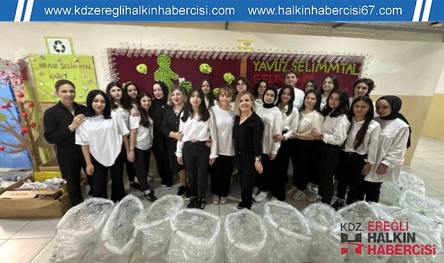DÜZCE (İHA) – Düzce Yavuz Selim Mesleki Teknik ve Anadolu Lisesi Müdür Yardımcısı Filiz Mutlu, sıfır atık projesi çerçevesinde kendi odasında toplamaya başladığı pet şişe ve kapakları toplamaya başladı. Odası pet şişeler ile dolan Mutlu'nun projesi okula yayılınca 1 haftada 10 çuval pet şişe toplandı.