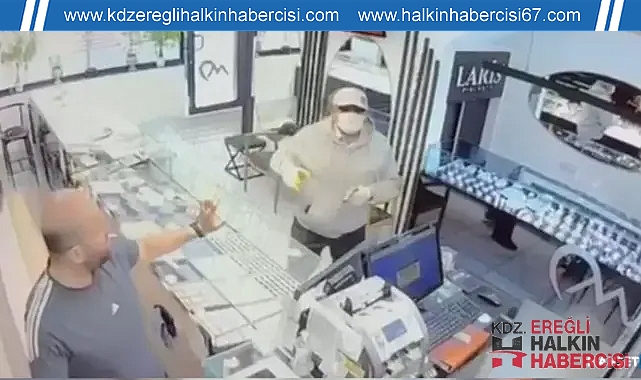 Karabük'te boncuk atan tabancayla kuyumcuyu soyma girişiminde bulunan şüpheli gözaltına alındı.Kartaltepe Mahallesi Kıbrıs Şehitleri Caddesi'nde bulunan Mustafa D'ye ait kuyumcuya, maskeli, şapkalı ve silahlı bir kişi girdi.Altınların elindeki poşete doldurulmasını isteyen M.G. (48), çalışanlar tarafından etkisiz hale getirildi.İhbar üzerine olay yerine polis ekipleri sevk edildi.Ekiplerce gözaltına alınan şüpheli karakola götürüldü.Yapılan kontrolde silahın boncuk atan tabanca olduğu belirlendi.Öte yandan olay anı, iş yerinin güvenlik kamerasınca görüntülendi.