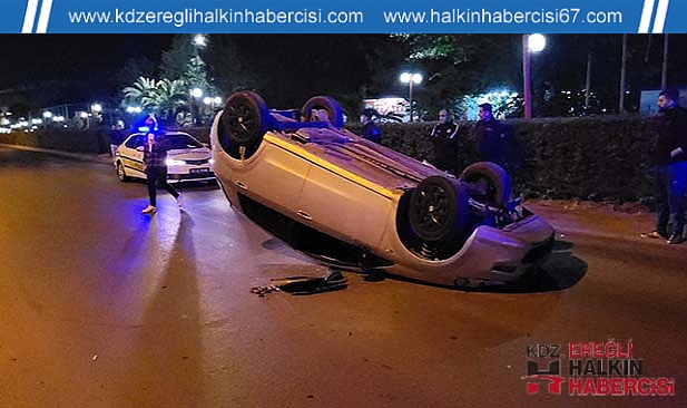 Zonguldak’ın Ereğli ilçesinde alkollü sürücünün kullandığı otomobil park halindeki otomobile çarparak takla attı. Kaza, gece 01.30 sularında Süleymanlar Mahallesi Cehennem ağzı Mağaraları mevkiinde meydana geldi. İddiaya göre, Ereğli istikametinden Kemer istikametine giden Doğan K. idaresindeki 3 otomobil park halindeki otomobile çarparak takla attı. Sürücüyü çevredeki vatandaşlar araç içinden çıkarırken sağlık ekiplerine haber verdi. Kısa sürede olay yerine gelen Sağlık ekipleri sürücüyü ambulansa alarak İlk müdahaleyi yaparak tedavi altına almak istedi.BU ARABAYA BEN Mİ ÇARPTIM?Ambulanstan inerek kaza yaptığı araç içinde bir şeyler arayan sürücü Doğan K. kazadan dolayı çevresine 'Bu araca ben mi çarptım' diyerek sordu.Sürücü yapılan alkol testinde 112 promil alkollü çıktı. Ambulansa alınan sürücü Doğan K. tedavisi için hastaneye kaldırıldı.Otomobil olay yerine gelen çekici ile kaza yerinden kaldırıldı. Kaza ile ilgili soruşturma başlatıldığı öğrenildi.
