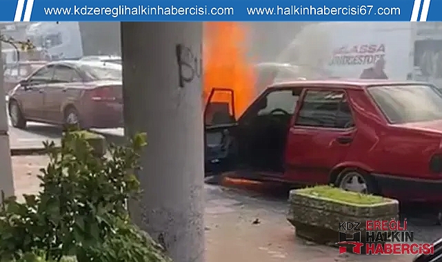 Karadeniz Ereğli'de park halindeki otomobil alevlere teslim oldu. Yangın kısa sürede söndürüldü.