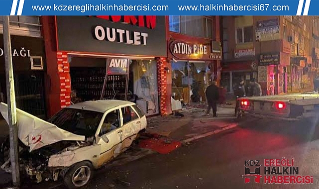 Polisten kaçan alkollü sürücü önce dükkana sonra direğe çarptı