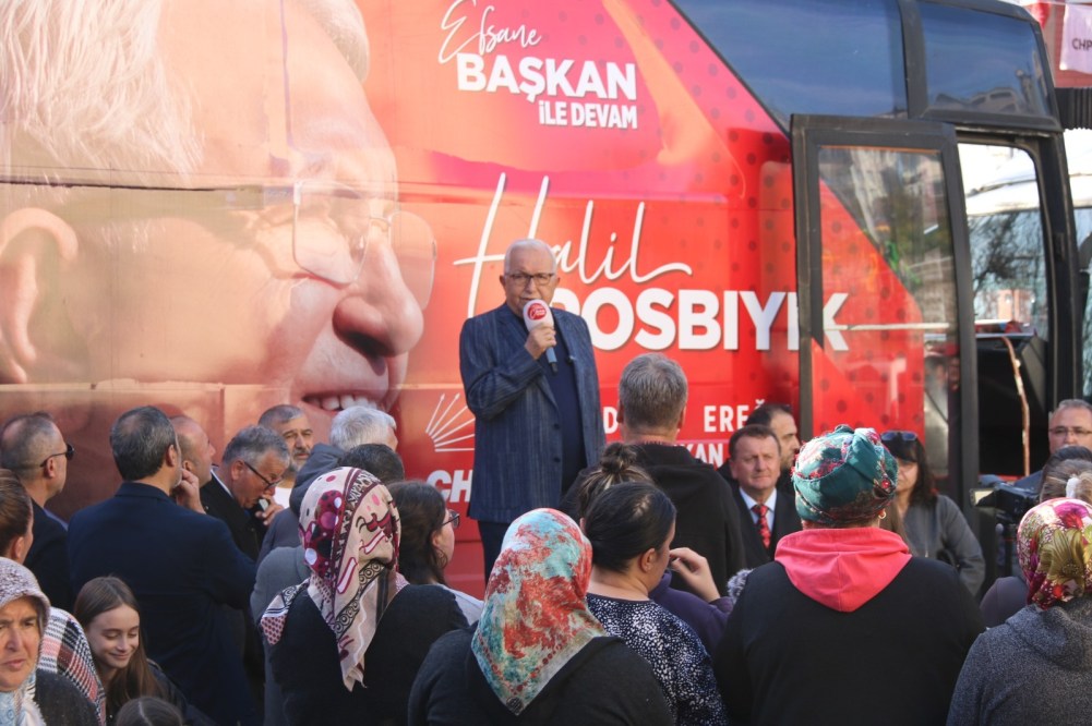 Kdz. Ereğli Belediye Başkanı ve CHP Belediye Başkan Adayı Halil Posbıyık, seçim gezilerine Bağlık, Köseler, Korubaşı, Çeştepe ve Potbaşı’nda devam etti. Ülkenin zor bir dönemden geçtiğini ve ekonomik zorlukların vatandaşları olduğu gibi belediyeleri de çok zorladığını belirten Başkan Posbıyık; “Biz tecrübemizle Ereğli Belediyesi’ni ayakta tutuyoruz. Ereğli’de kaotik ortama izin vermeyelim. Ereğli’nin istikrarı bozulmasın, maceraya sürüklenmesin” dedi.Kdz. Ereğli Belediye Başkanı ve CHP Belediye Başkan Adayı Halil Posbıyık, seçim gezilerine hafta sonunda da devam etti.Başkan Posbıyık, beraberinde belediye meclis üyesi adaylarıyla birlikte Bağlık Forteksler, Bağlık Hatip, Köseler, Korubaşı, Çeştepe ve Potbaşı’nda vatandaşlarla bir araya geldi. Halkın gösterdiği ilgiye ve güvene teşekkür eden Başkan Posbıyık, Ereğli’de kaotik bir ortam oluşmaması için tekrar aday olduğunu belirterek, yeni dönemde yarım kalan işlerini tamamlamayı ve Ereğli’ye bir çok yeni hizmet kazandırmak istediğini söyledi.Başkan Posbıyık şunları söyledi:“Ereğli’ye aşığım. Bana oy veren, oy vermeyen, düşüncesi ne olursa olsun, o partiden, bu partiden benim için hiç önemli değil. Benim için Ereğli önemli. İnsanlar genel seçimlerde ideolojisi neyse onun için mücadele eder. Ancak yerel seçimlerde muhtarlık ve belediye seçimlerinde partizanlık olmaz. Mahallesine, şehrine kim sahip çıkıyorsa, kim liderse ona oy verilir.Bugün hükümet yatırım yapamıyor, ülkenin durumu çok kötü. Dede torununa harçlık veremiyor. Ekonomik yönden batmış. Aç insanlar var. 10 bin liraya emekliler geçinmeye çalışıyor. Hükümet yatırım yapabilse Çevre yolunu yapardı. Ereğli’nin bir Emniyet binası yok, hükümet konağı yok. Her ilçede yüzme havuzu var Ereğli’de yok. Devlet yatırım yapamazken birileri iş bilmeden sallıyorlar. Vatandaş yerse. Şunu yapacağız, bunu yapacağız diyerek işi bilmeden milleti kandırmaya çalışıyorlar. Bu iş bilmezlere inanmayın, Ereğli’yi yeni maceralara sürüklemeyin. 2014’den sonra neler olduğunu hep birlikte gördük. Belediyecilik tecrübe işi, lider işi. Tüm bu sıkıntılar içerisinde Ereğli Belediyesi’ni biz tecrübemizle ileriye taşımaya çalışıyoruz. Ereğli’de kaotik ortama izin vermeyelim. Ereğli’nin istikrarı bozulmasın, maceraya sürüklenmesin.”Başkan Posbıyık, geleneksel halk iftarları kapsamında hafta sonunda da Kdz. Ereğli halkı ve Mahalle Muhtarları, Elpek Dokuyan Eller, Girişimci Kadınlar, Erdemirli Kadınlar Derneği, Kerçep, Eveder, Tema, Çocuk Esirgeme Kurumu, Kız Yetiştirme Yurdu ve Kadın Gücü kooperatifiyle iftar sofrasında buluştu.