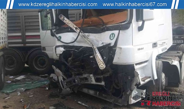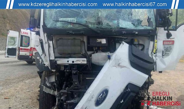 Zonguldak'ta virajı alamayan PTT'ye ait kargo aracı kontrolden çıkıp park halindeki üç tıra çarparak durabildi. Kazada üç kişi yaralandı.