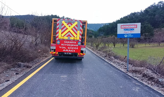 Sakarya Büyükşehir'den kırsal yollarda çizgi mesaisi