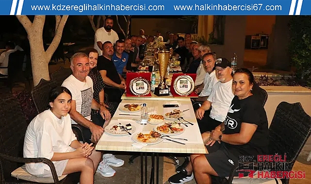 8. Uluslararası En İyi Masterler Şampiyonası 50 Yaş üstü grubunda Şampiyon olan Kdz. Ereğli Turgut Tanyıldız Masterler takımına, Takım Kaptanı Murat Sesli yemek verdi. Yemekte konuşan Sesli, takıma ismini verdikleri Turgut Tanyıldız’ın her zaman onlarla beraber olduğunu söyleyerek, kupanın Kdz. Ereğli’ye hayırlı olmasını diledi. Sesli konuşmasında, “ 8.’si düzenlenen, Türkiye’nin en iyi takımlarının katıldığı 50 yaş grubu masterler kupasında şampiyon olduk. Senelerdir katılıyoruz ve senelerdir şampiyon oluyoruz, bir kere ikinci olduk. Ama bu sene şampiyonluğun apayrı manevi bir tarafı vardı. Bizimle yıllardır bu turnuvalara gelen ve hiçbir zaman ayrılmadığımız, dostumuz kardeşimiz hem de takımımızın başkanı Turgut Tanyıldız’ın adıyla şampiyon olmak bizim için elzemdi. Ve tüm takım arkadaşlarımız canla başla mücadele ettiler ve onun adını şampiyonlukla yaşatarak, buraya geldik. Ben var olduğum sürece arkadaşlarımızla beraber bu turnuvalara geldiğimiz müddetçe onun adını yaşatacağız. İnanıyorum ki o bizimle beraber ve bizimle beraber bu mutluluğu paylaşıyor. Mekanı cennet olsun, toprağı bol olsun. Turnuvalara katılmak biraz meşakketli, uğraş istiyor. Bugüne kadar katıldığımız tüm turnuvalarda Murat Üçpınar’ın emeği var. O olmasa biz bu turnuvalara katılamayız. Özellikle ona teşekkür ediyorum. Turnuvaya katılan, emek veren tüm arkadaşlarımıza da ayrı ayrı teşekkür ediyorum. Bizi yalnız bırakmayan muhtarlarımıza ve arkadaşlarımıza teşekkür ediyorum. Turnuvaya katılmak güzel ama bir amacı var. Amaç bizde tektir, şampiyon olmak. Arkadaşlarımızın hepsi futbolu layıkıyla oynayıp, başarılı olmuş arkadaşlarımız. Bundan sonra ki turnuvalarda yine beraber olacağız. Kdz. Ereğli Masterler’ı tanımayan yok. Çok iyi bir itibarımız var ve bunu sağlayan takım arkadaşlarım. Bu başarı hepimizin. Birlik beraberlik ve başarımız devam etsin. Kupa hepimize, Ereğli’mize hayırlı olsun” dedi. Şampiyonluk kupasını alan Kdz. Ereğli Turgut Tanyıldız Masterler takımı, çekilen hatıra fotoğrafının ardından otelden ayrılarak, Kdz. Ereğli’ye yola çıktı..